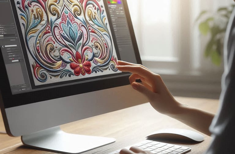 Modern AI-generated embroidery designs that bring unique patterns and creativity to life. Perfect for fashion wear, abayas, decorative items, and branding. Thread Art Studio combines AI technology with expert digitizing for precise embroidery results.